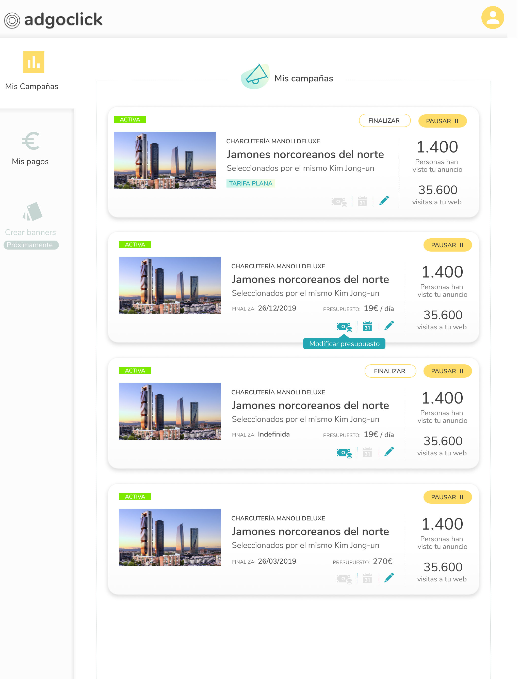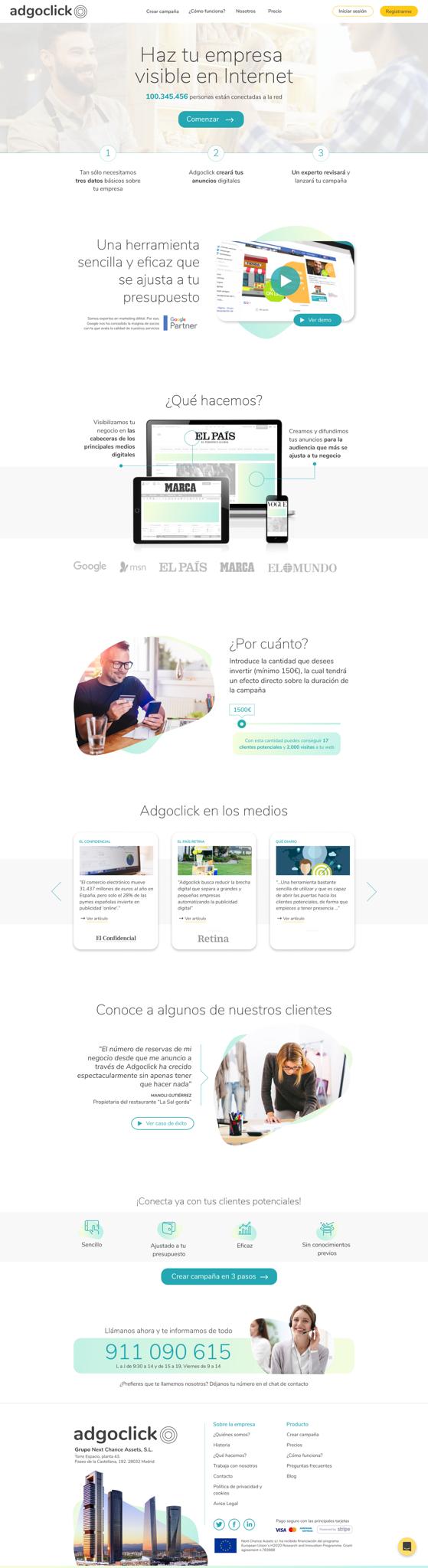 The objective of the project is to produce an app for small business or PYME as they are called in Spain. The challenge is to make the app easy enough for the users to create online ads like banners and can easy launch a campaign and keep track of it. There are tools that exist but too intimidating for the defined users to use in their case, Google Ads Platform. They have the budget and marketing goals but they hesitate to use the existing tools due to its complexity.